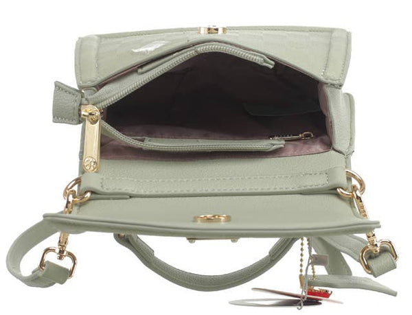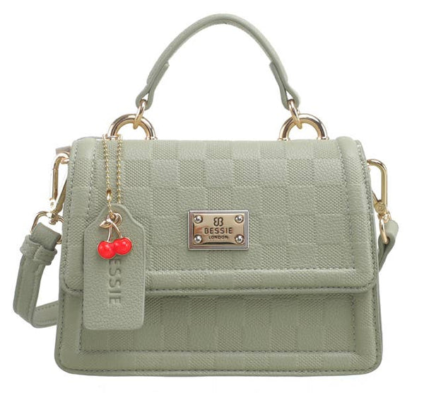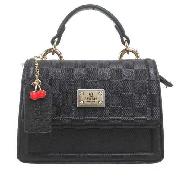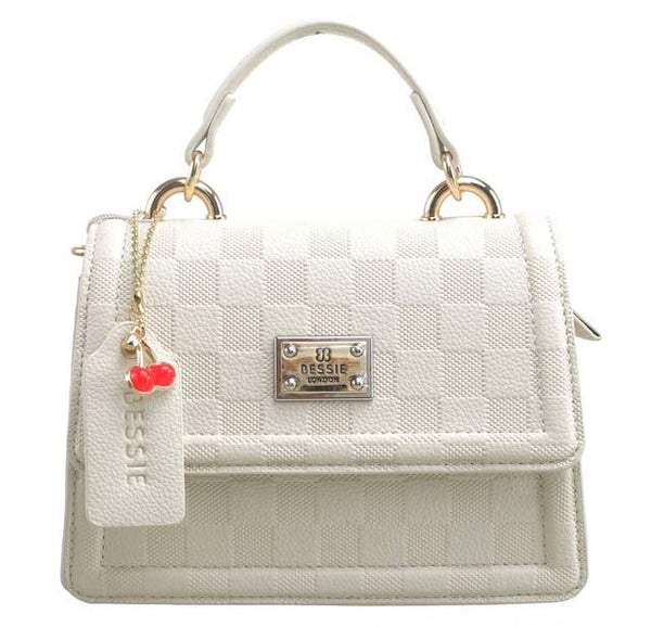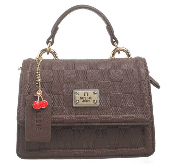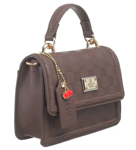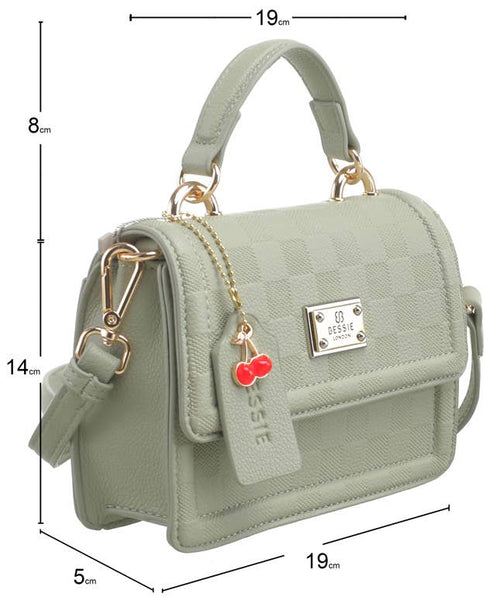 Features: Crossbody Bag | Top Handle | Cherry Charm | Fully Lined Interior | Detachable Long Strap | Zip Closure | Flap Over
